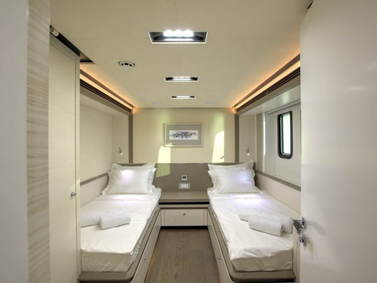 1 Master Suite, 1 VIP, 2 Twin & 1 Single Cabins.