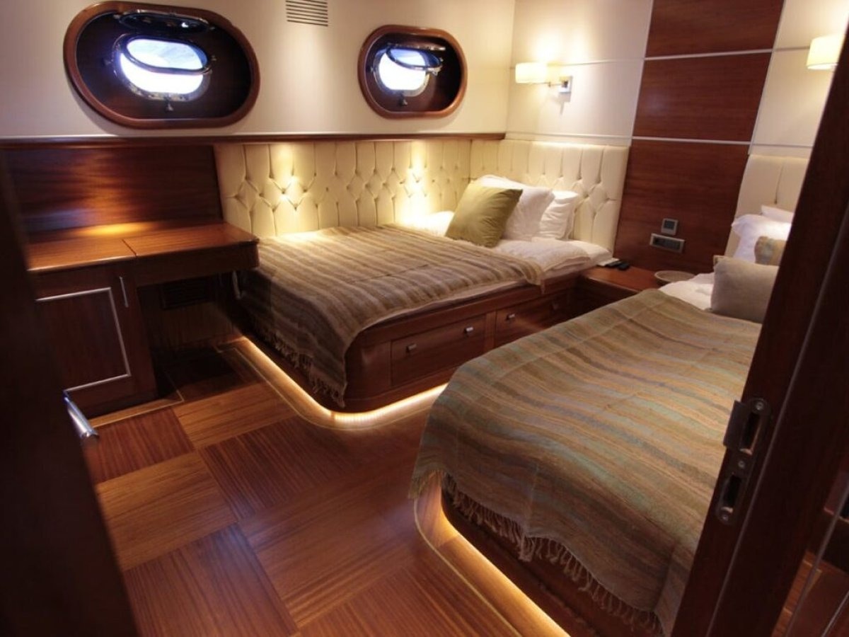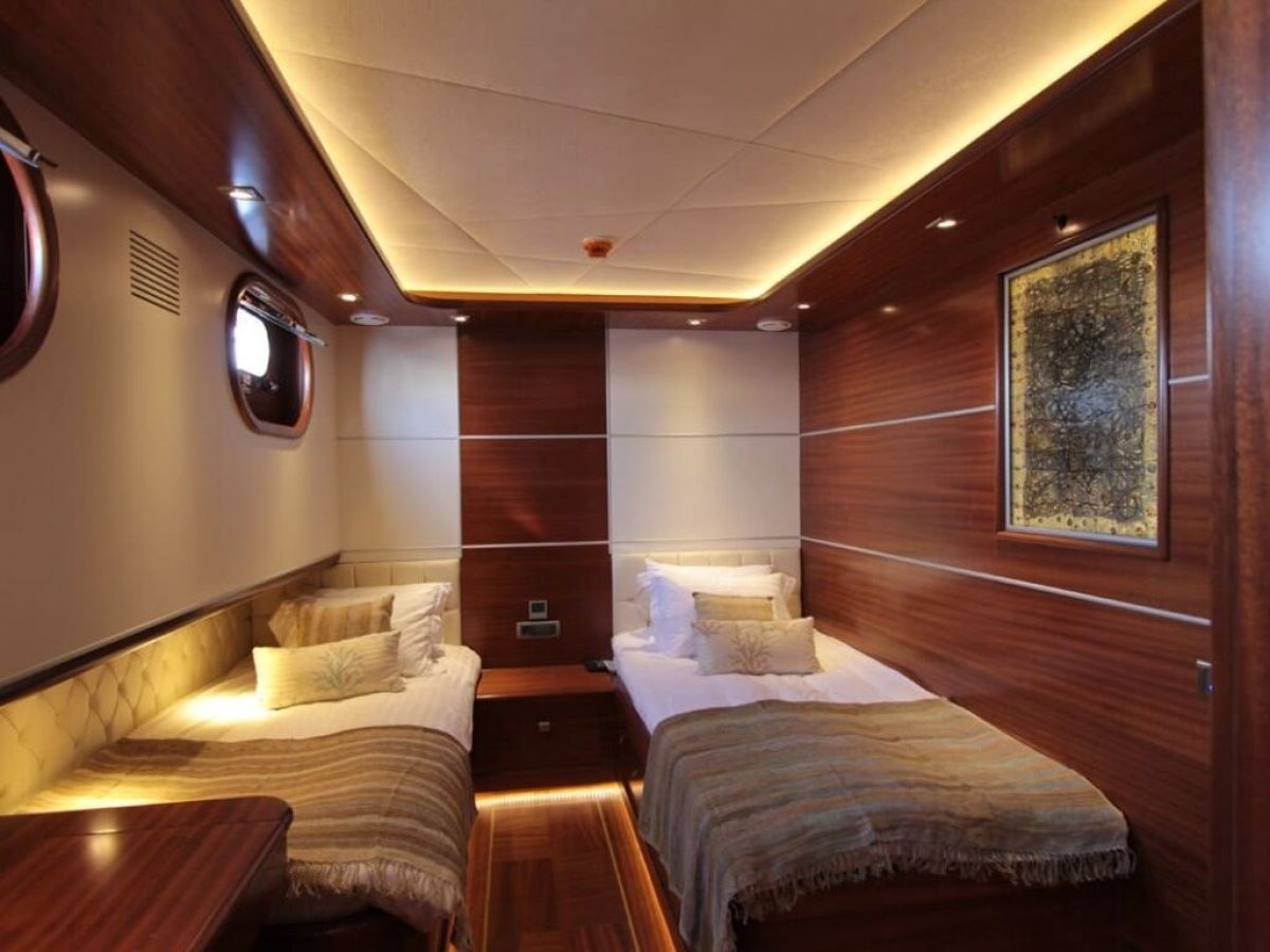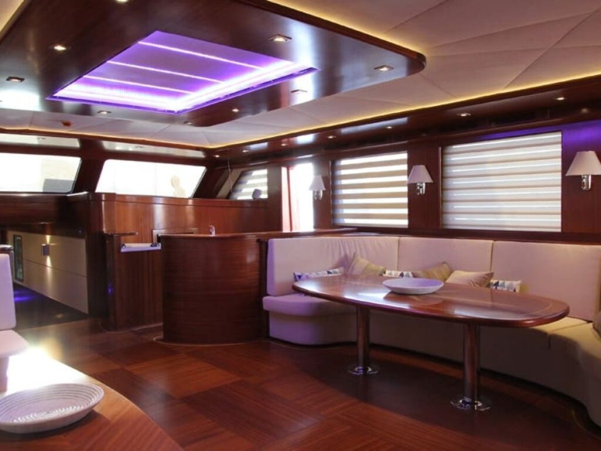The Carpe Diem V is a stunning 47-meter-long luxury gulet that can accommodate up to 12 guests in six spacious cabins, each with en-suite bathrooms, air conditioning, and other amenities. The gulet is perfect for a sailing holiday in Turkey and is crewed by a team of seven experienced and professional crew members, including a captain, a chef, and a hostess.
