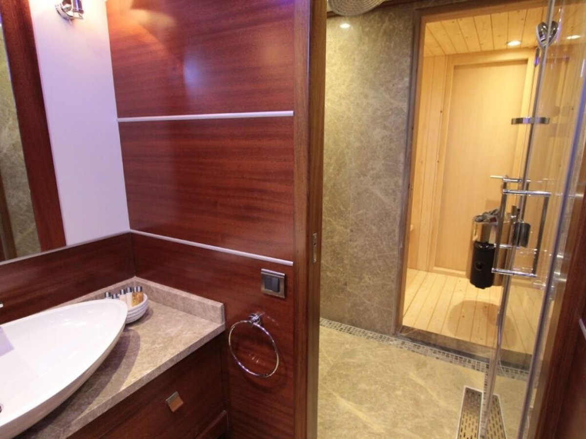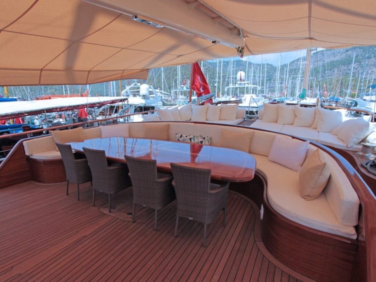 The gulet features a spacious deck area, including a sunbathing area, a dining area, and a comfortable lounge area, where you can relax and enjoy the breathtaking views of the Mediterranean Sea. You can also enjoy various water activities such as snorkeling, kayaking, and paddleboarding.