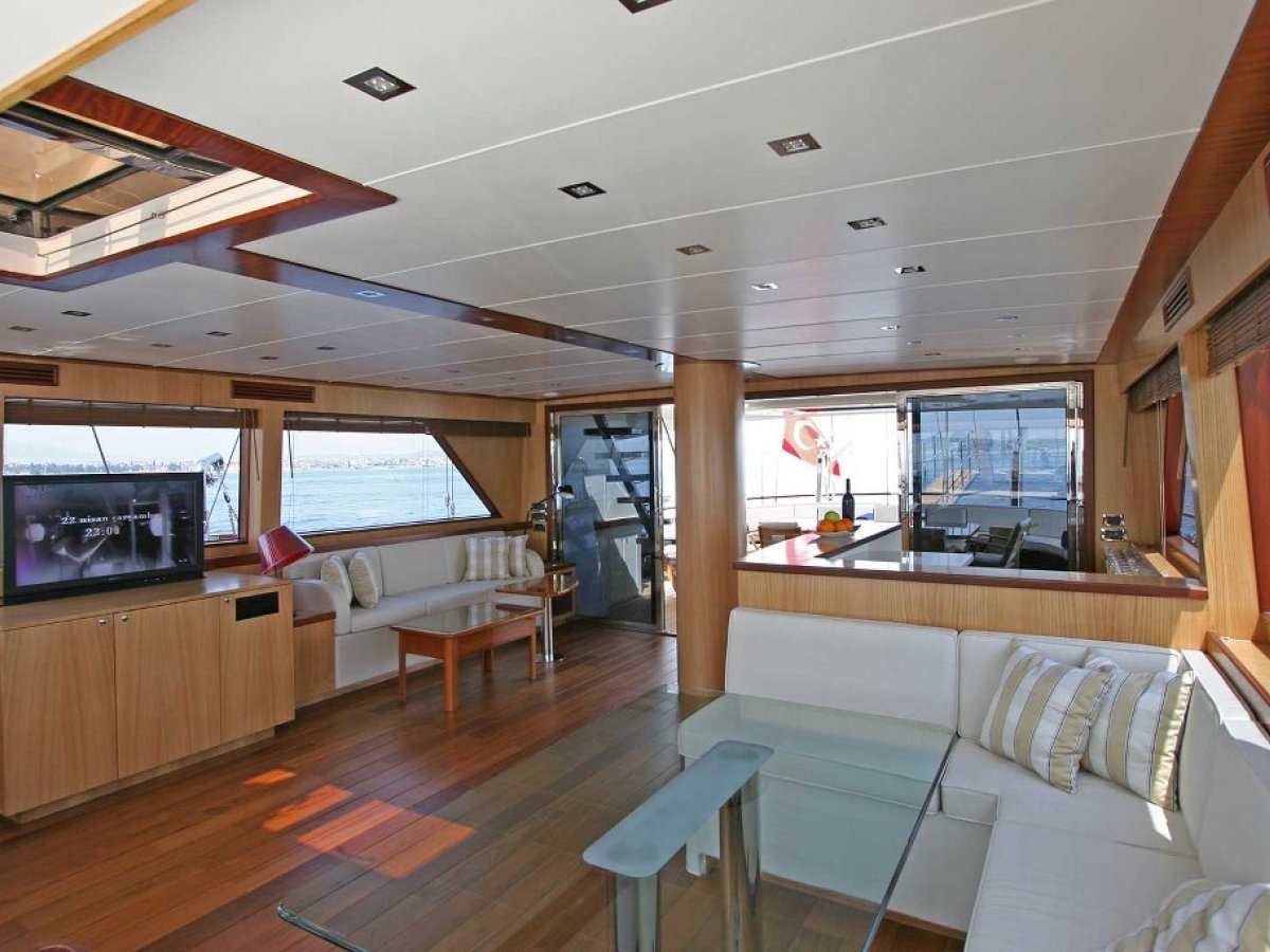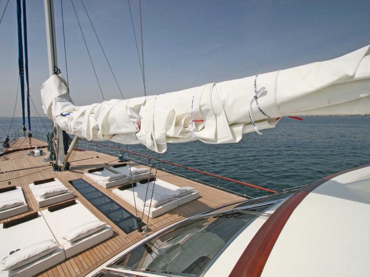 The boat is equipped with many watersport equipment such as kayaks, stand-up paddleboards, snorkeling gear, and fishing equipment, making it easy to enjoy a variety of activities while onboard.