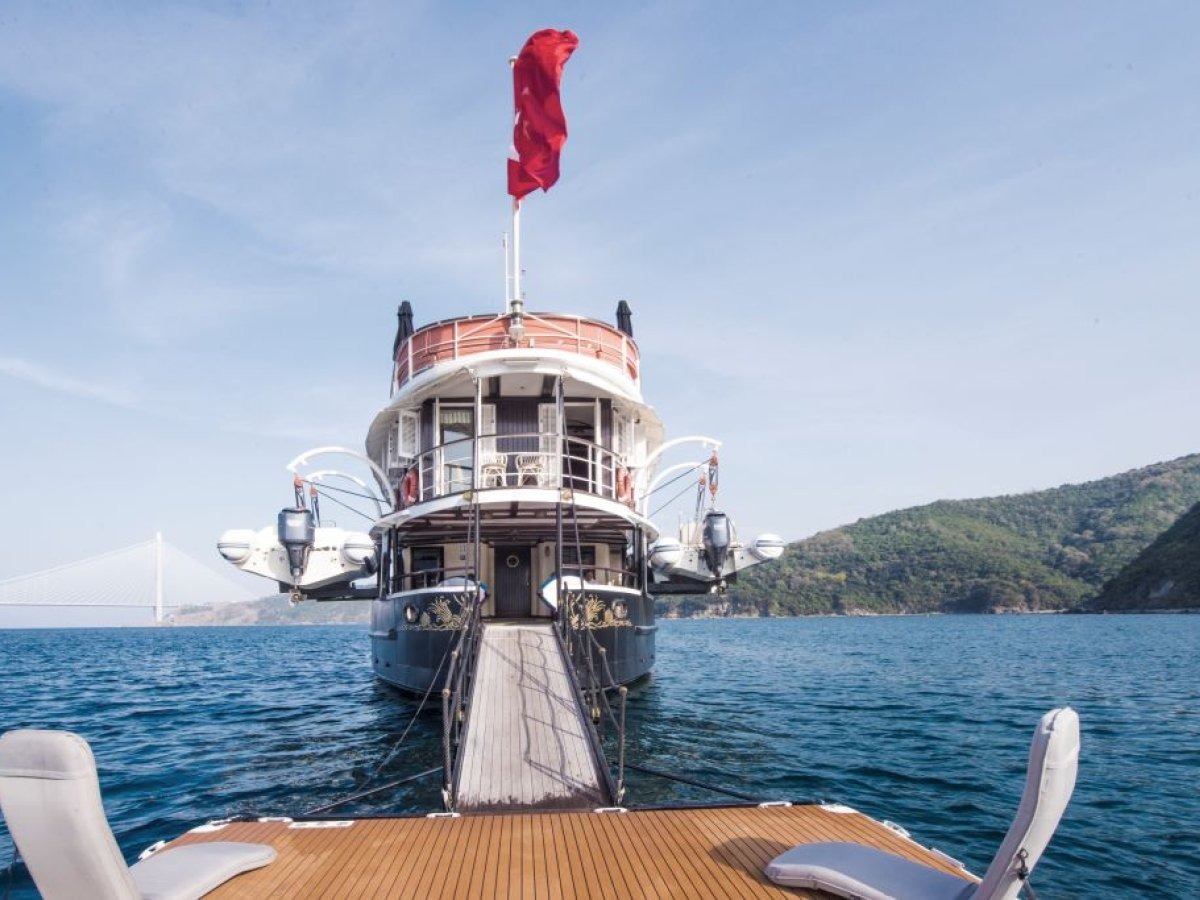 A graceful vintage Halas 71... As a highly sophisticated coastal cruiser with 12 elegantly decorated cabins and a crew of 16,Halas 71 is available for chartering and special celebrations in Istanbul in winter and along the southern and western coastlines of Turkey in summer months.