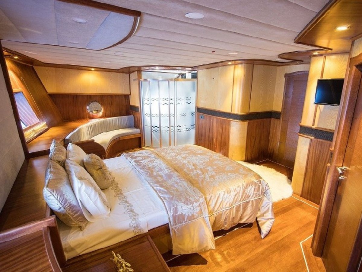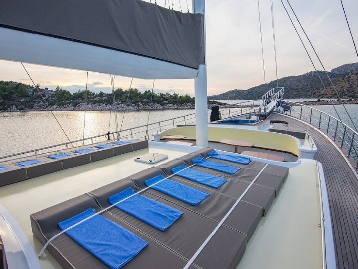 Gulet Nevra Queen is a spacious vessel with a capacity of up to 20 passengers. Its large deck area provides ample space for relaxation and socializing, making it ideal for group outings or family vacations. One of the standout features of this vessel is the jacuzzi located on board, providing a perfect place to unwind and enjoy the beautiful views.