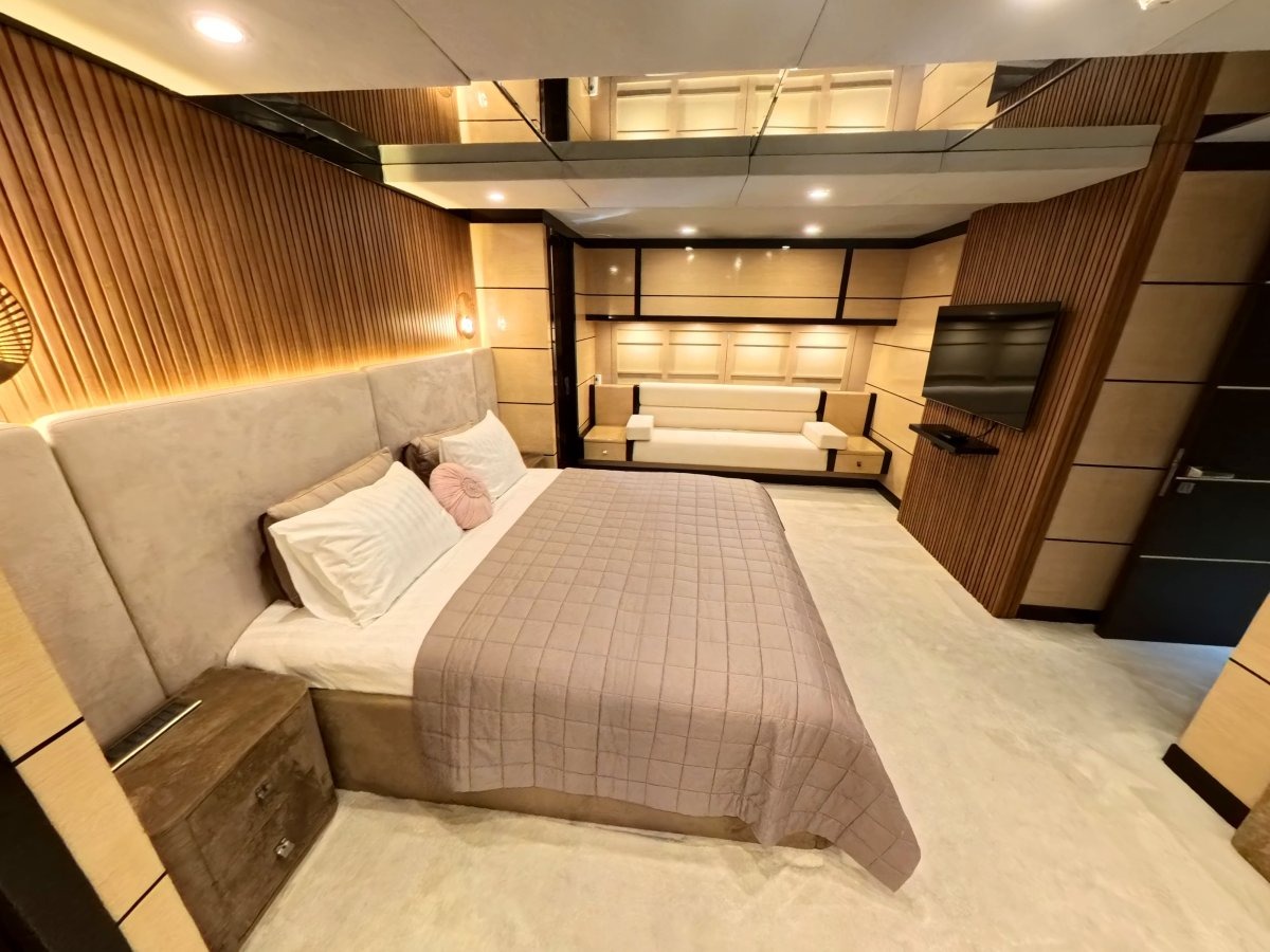 2 Master suites, 3 Double cabins & 1 Double cabin with one additional single bed.