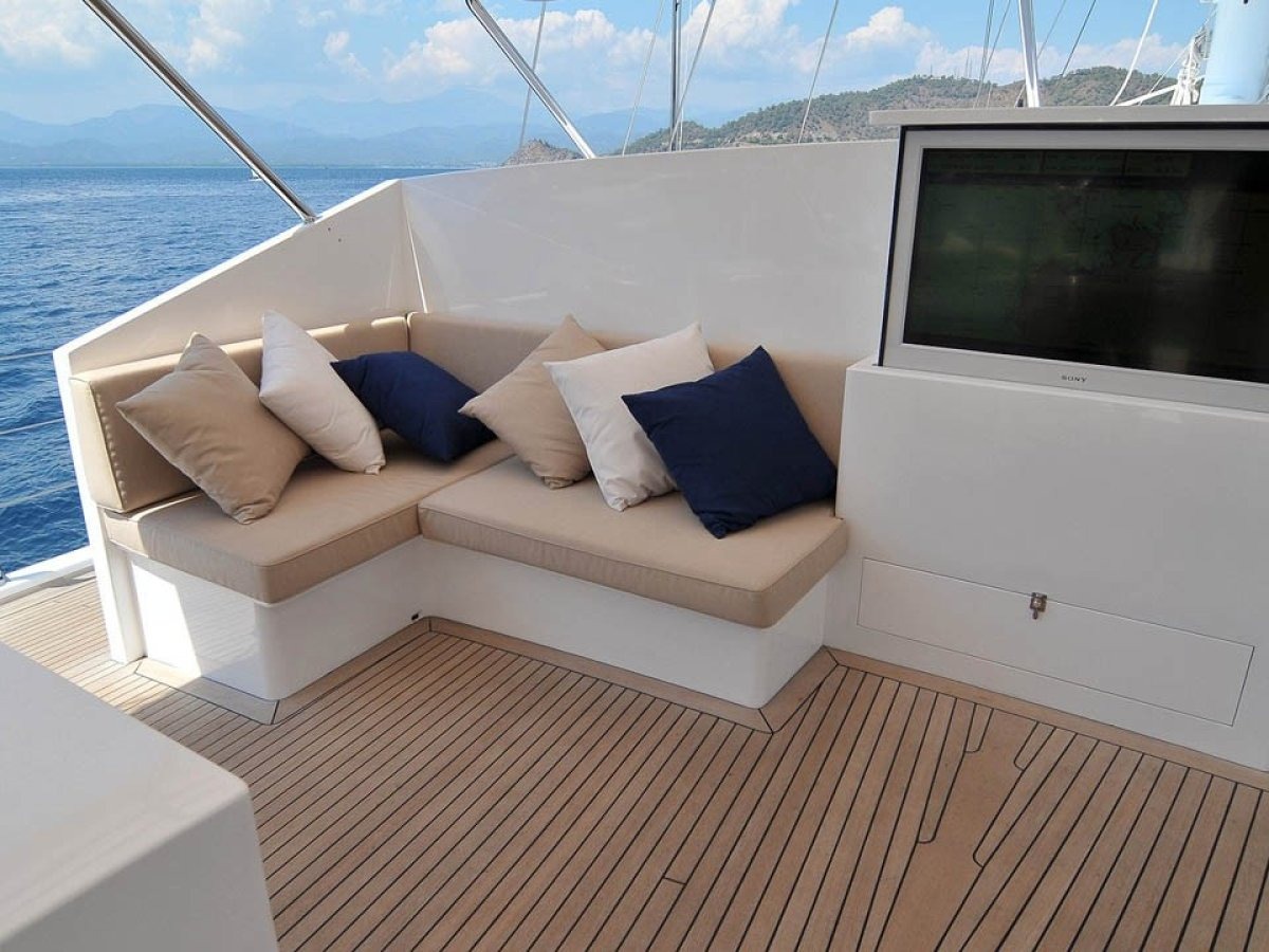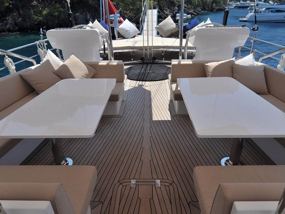 Furnished with high-quality furniture, this elegant yacht provides comfort with its private bathrooms and 24-hour air conditioning.
