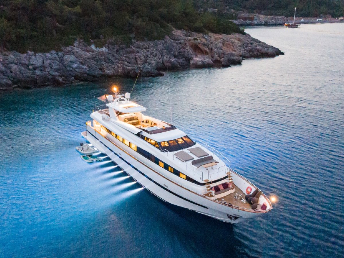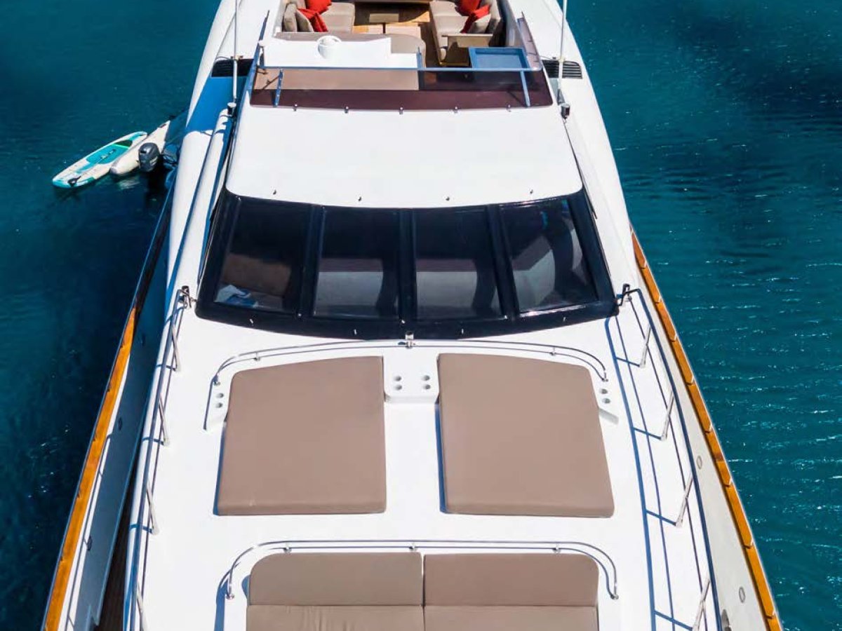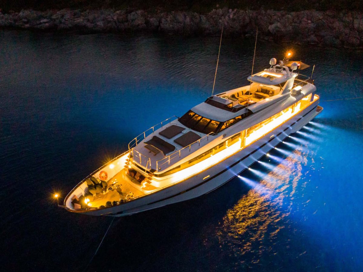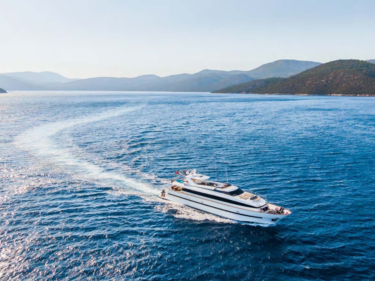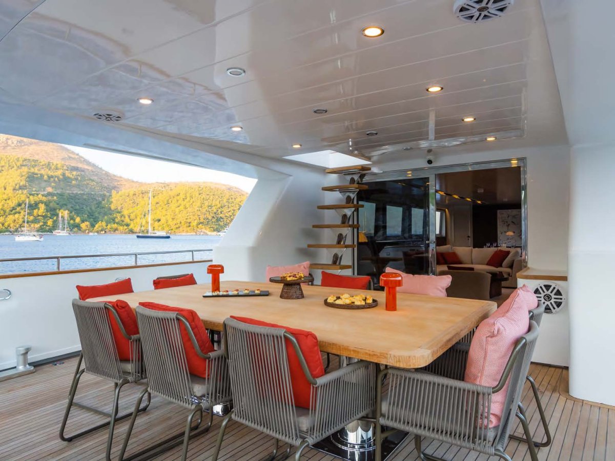 AXELLA accommodates up to 10 guests. The master stateroom is located on the main deck and consists of queen bed, chaise lounge, 65-inch mirror TV and marble ensuite.