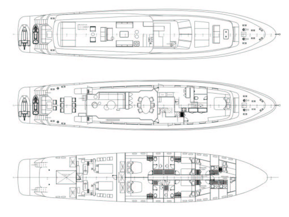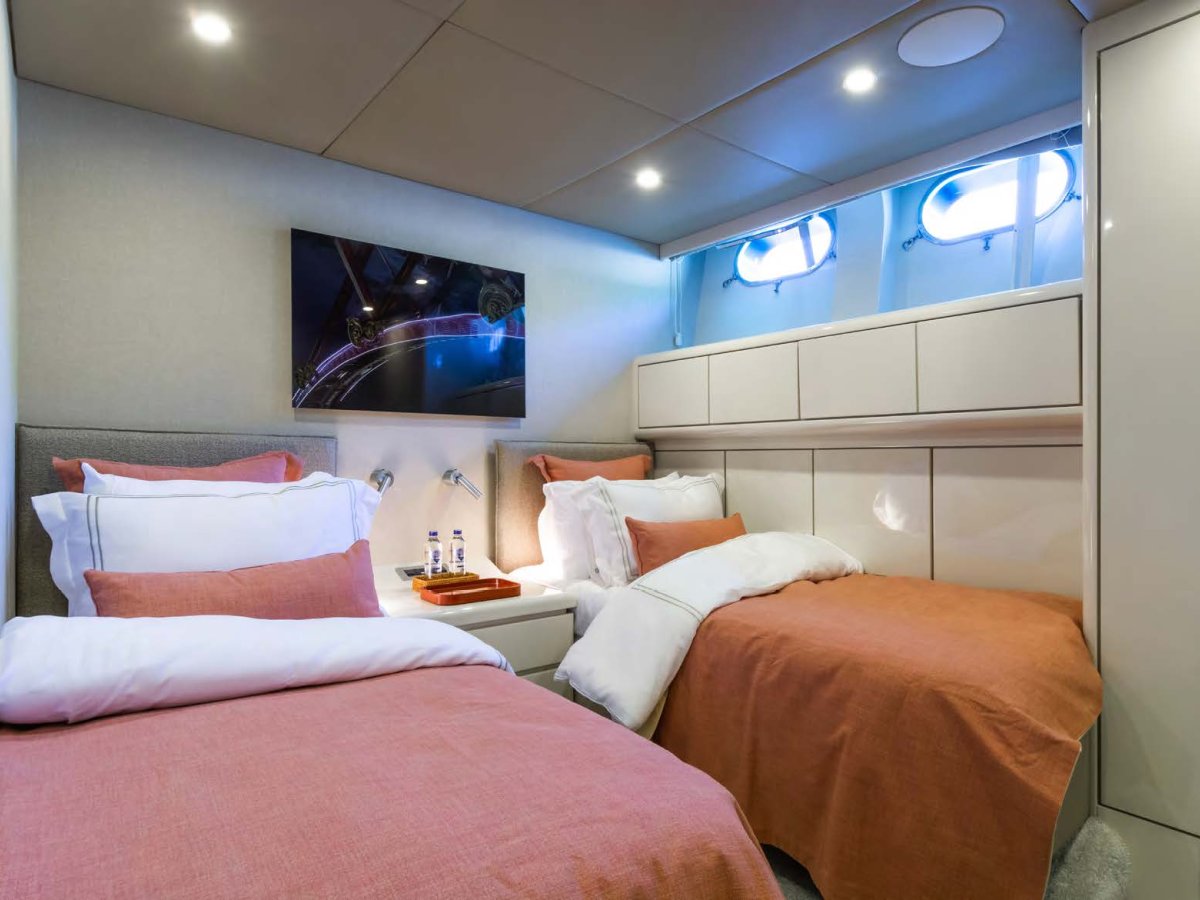 1 Master on main deck, 2 VIP cabins and 2 twin cabins.