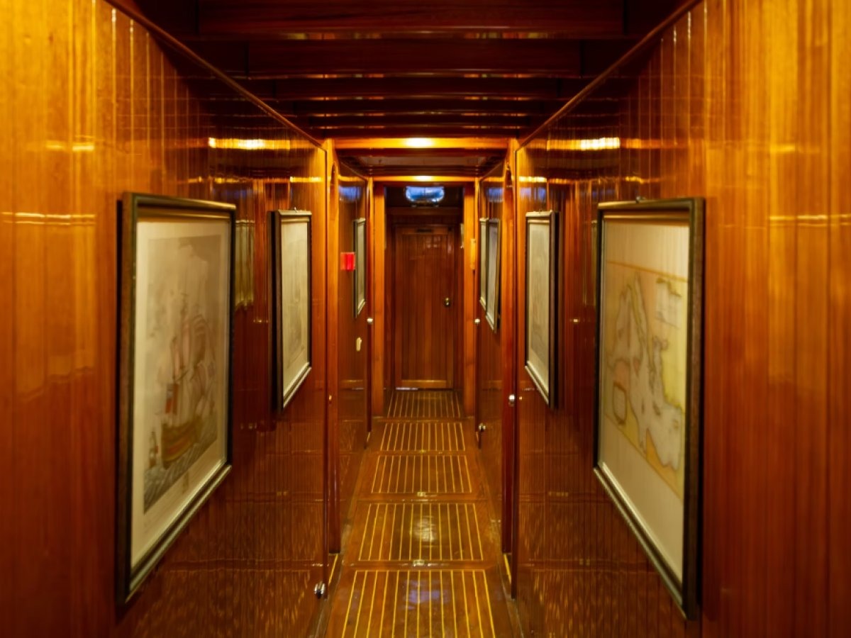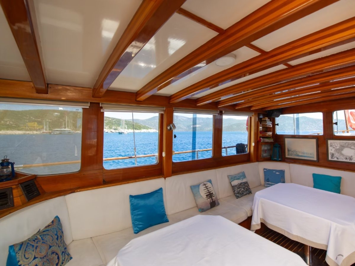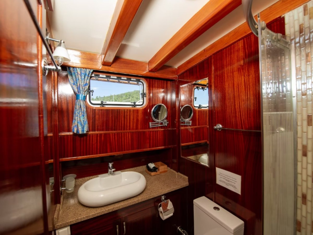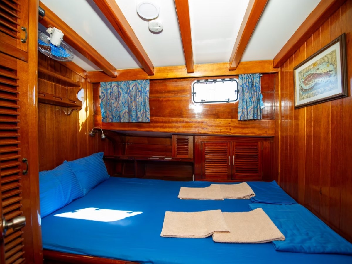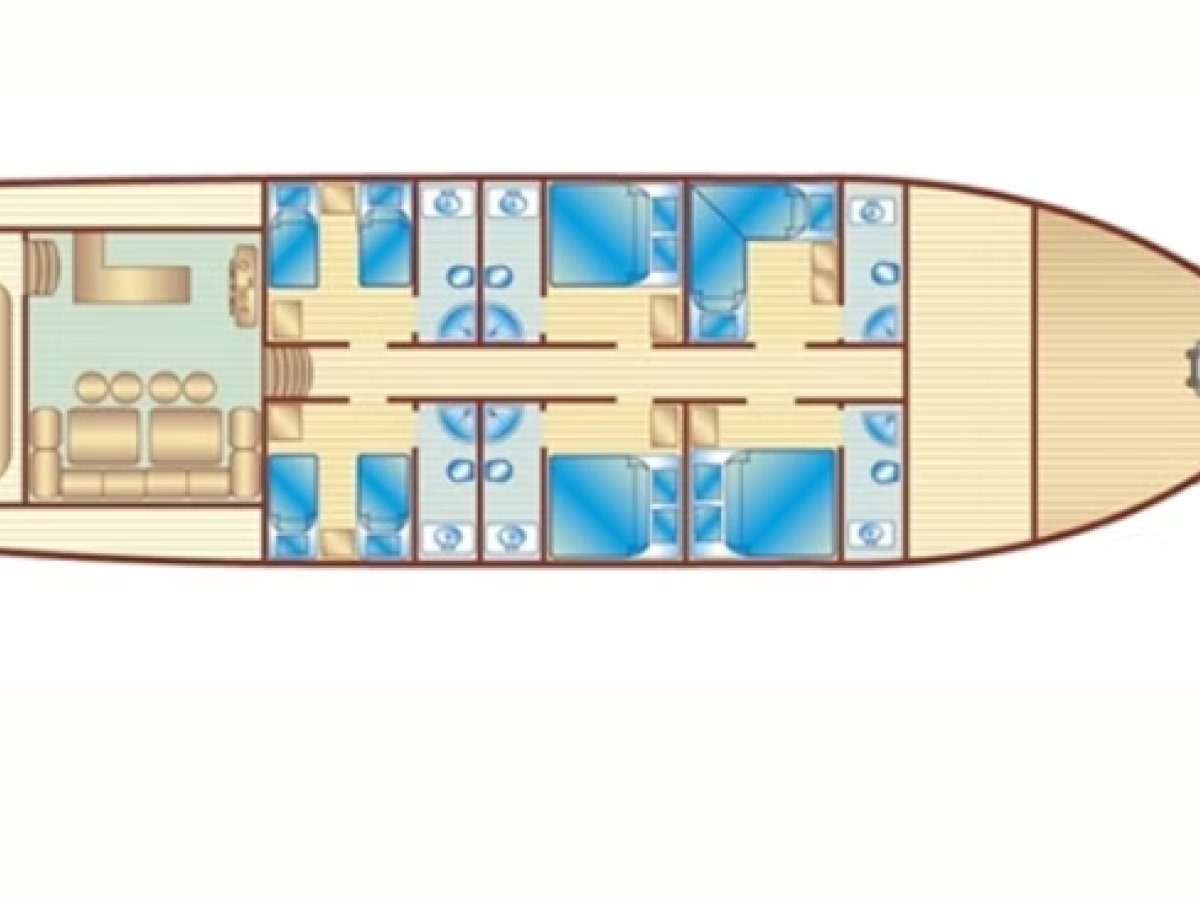 3 double cabins and 3 twin cabins for 12 guests. Seperate crew quarters for captain plus 3 crew